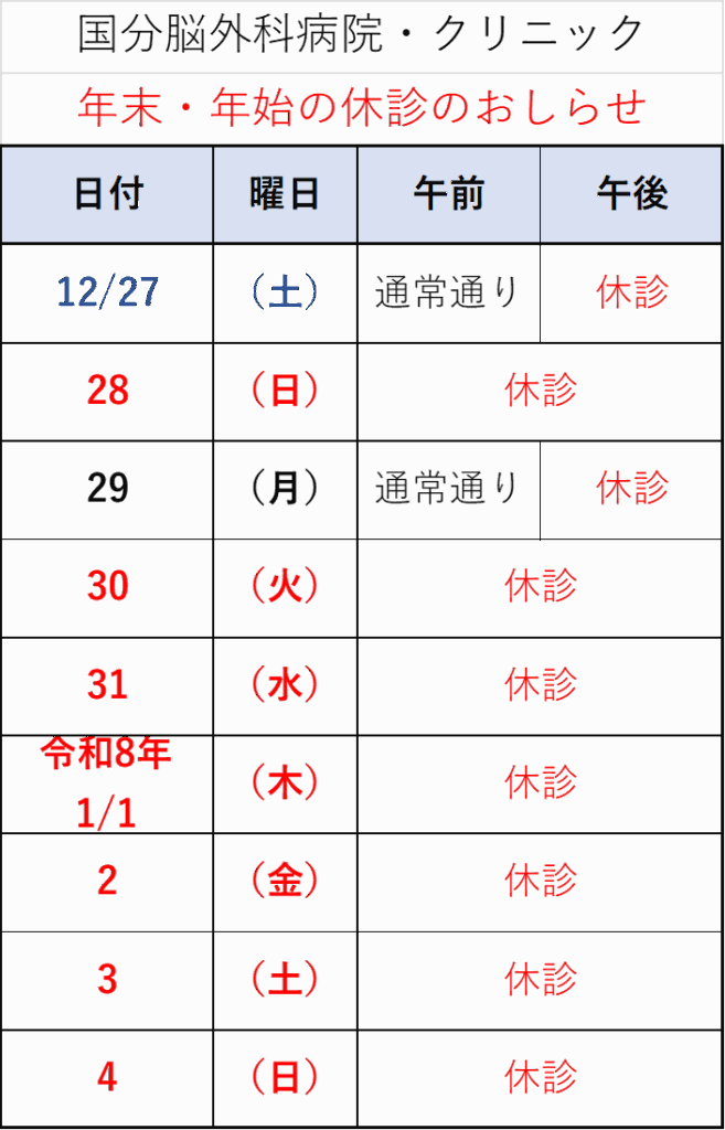 年末年始の休診のお知らせ